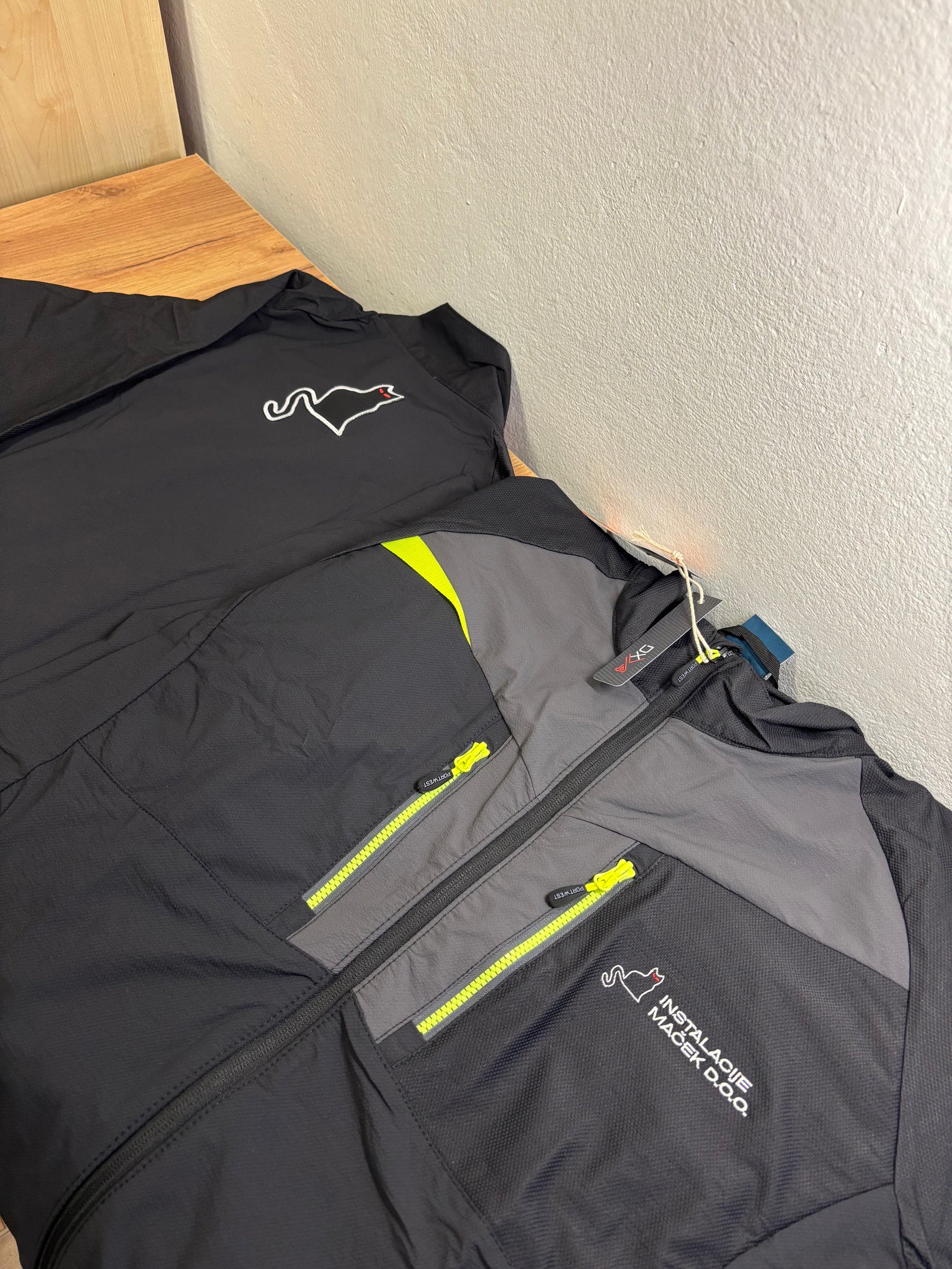 Vezenje logotipa na hrbtno stran jaken in brezrokavnikov