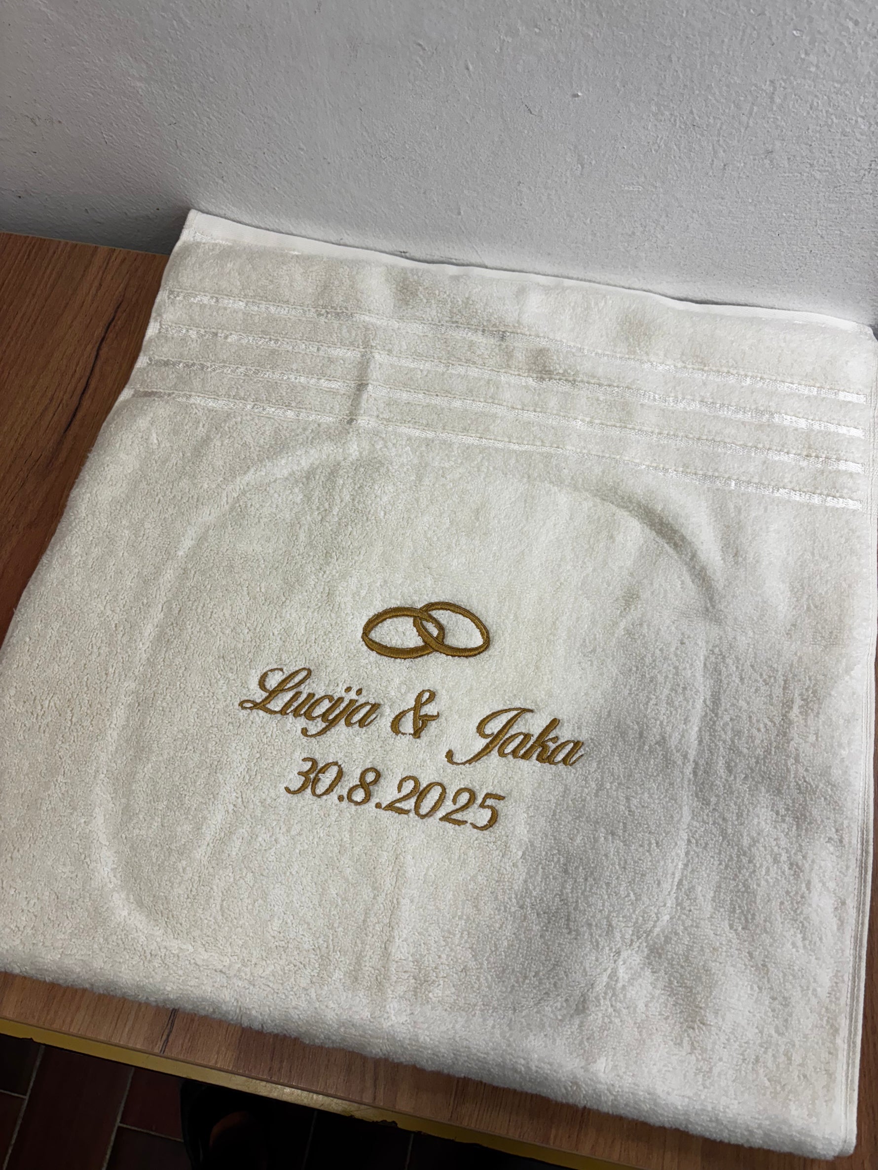 Perosnalizirano vezenje poročnega motiva na brisačo