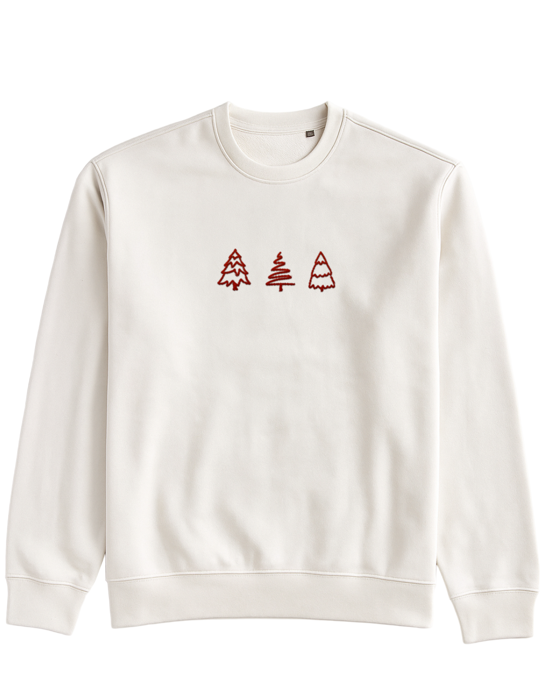 Božični pulover z motivom treh preprostih smrekic je popolna izbira za vse, ki imajo radi eleganten in preprost praznični stil - minimalističen všit motiv doda ravno prav prazničnega pridiha.