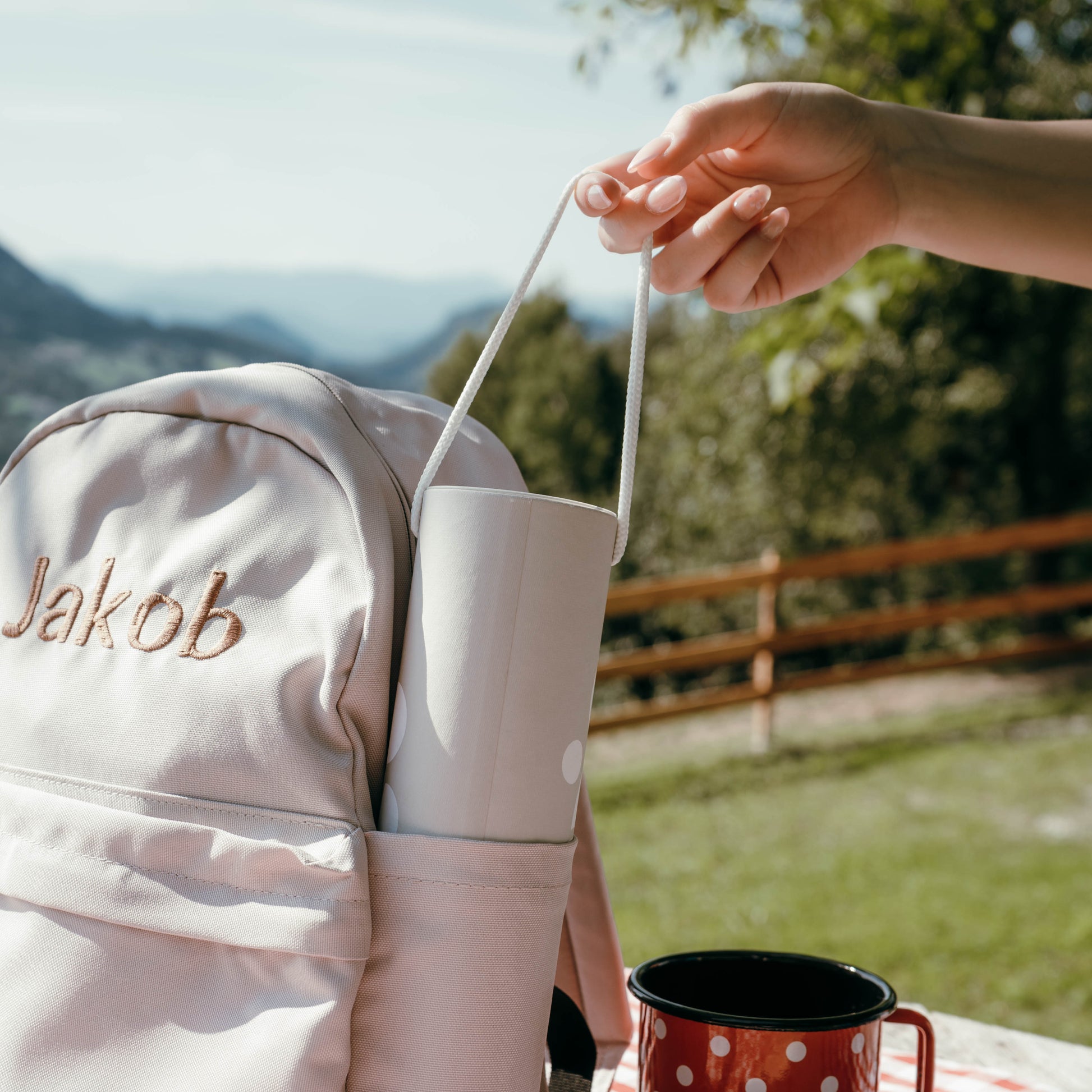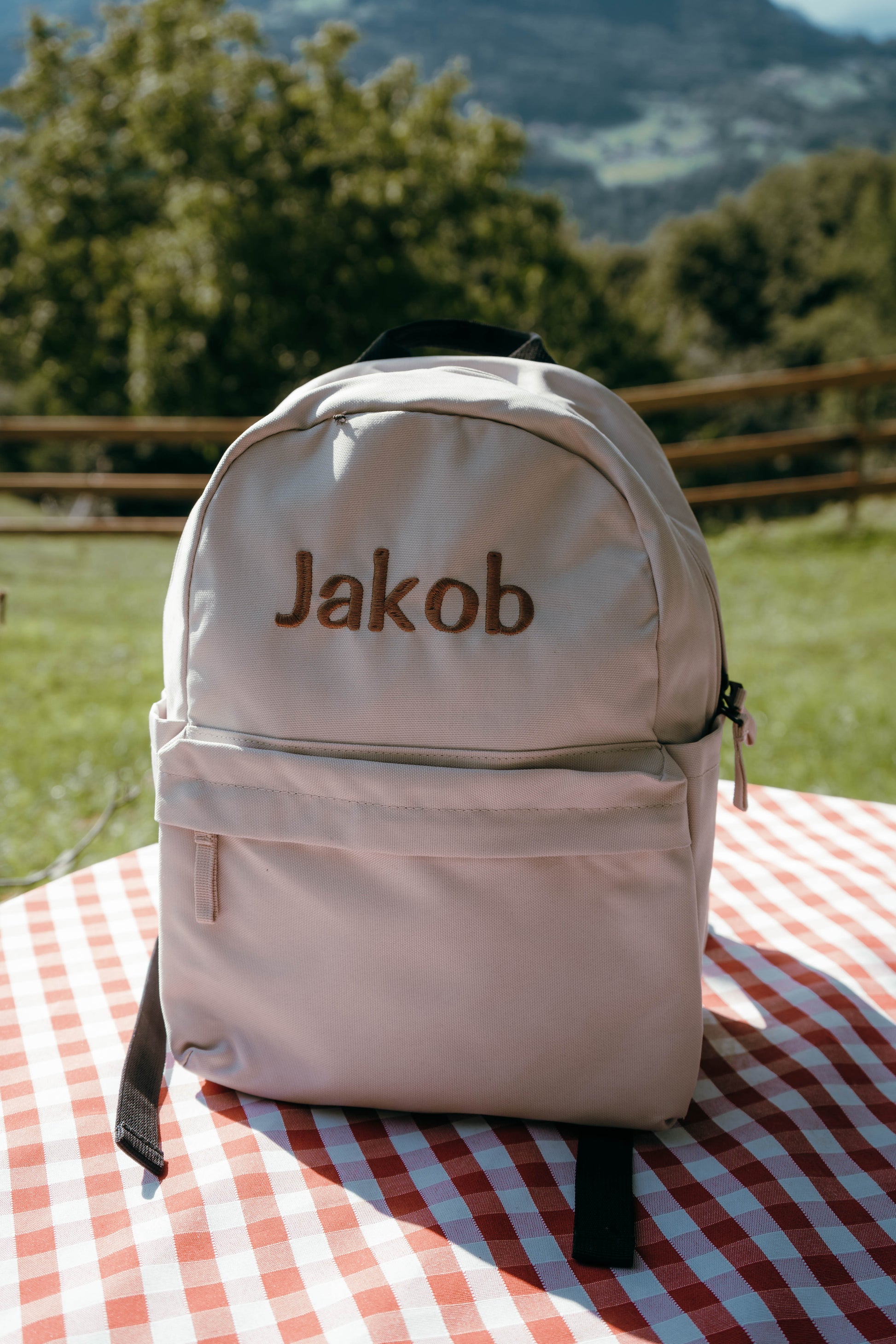 Nahrbtnik lahko personalizirate z imenom, tipografijo in barvo vezenja, zato je unikaten, praktičen in vedno prepoznaven. Odlično darilo za vrtec, šolo ali rojstni dan.