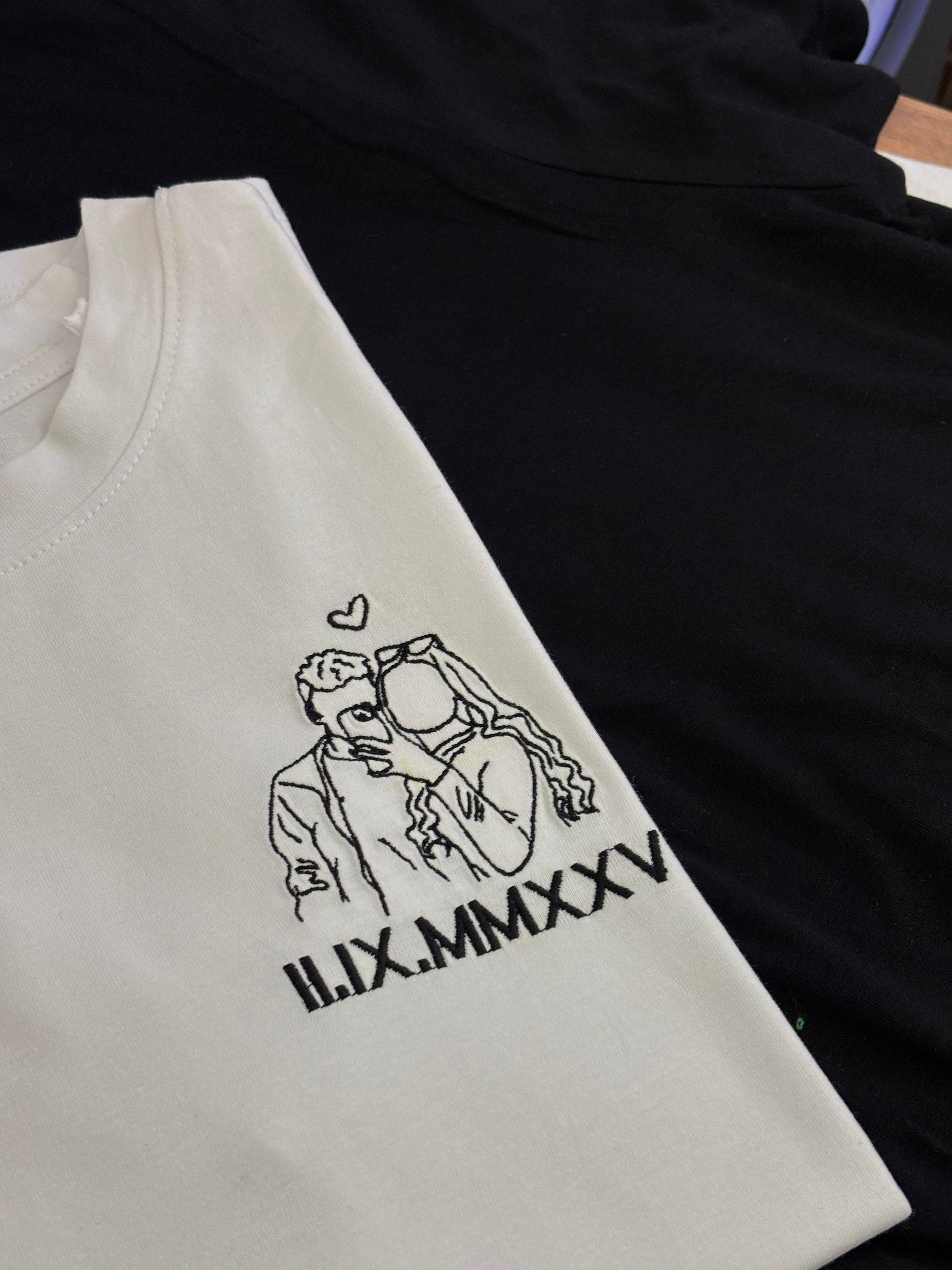 katerem bo vezen obris vaše izbrane fotografije in datum v elegantnih rimskih